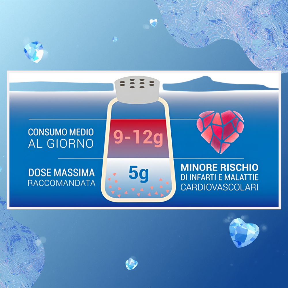 Sapevi che la maggior parte delle persone consuma troppo sale? Le statistiche sono chiare: mediamente ne assumiamo tra i 9 e i 12 grammi al giorno, oltre il doppio della dose massima raccomandata dall’Organizzazione Mondiale della Sanità, che è di soli 5 grammi. L’eccesso di sale è uno dei principali fattori di rischio per l’ipertensione e le malattie cardiovascolari. Ma la vera sorpresa è dove si nasconde: l’80% del sale che ingeriamo non proviene dalla saliera di casa, ma dai cibi lavorati, pronti o confezionati.